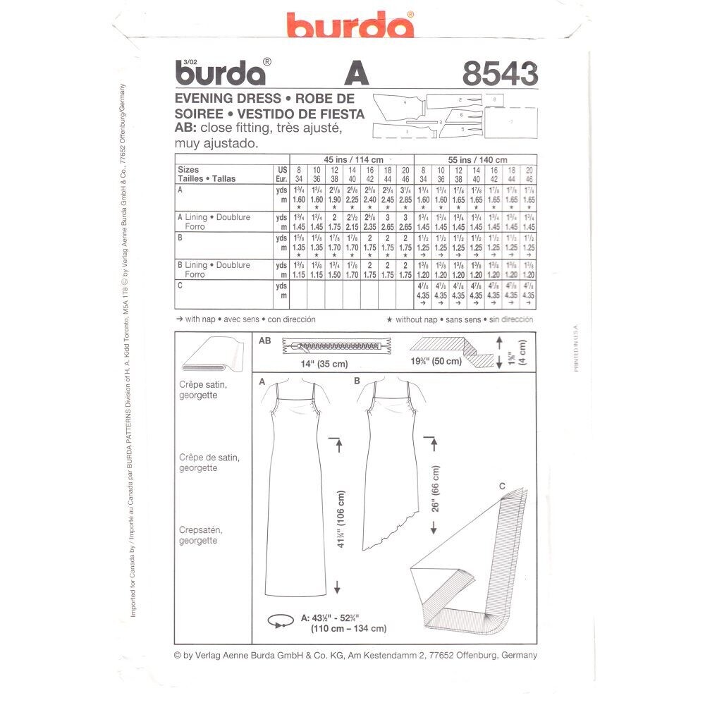 Burda 8543 Spaghetti Strap Dress Pattern Wrap Shaped Hem